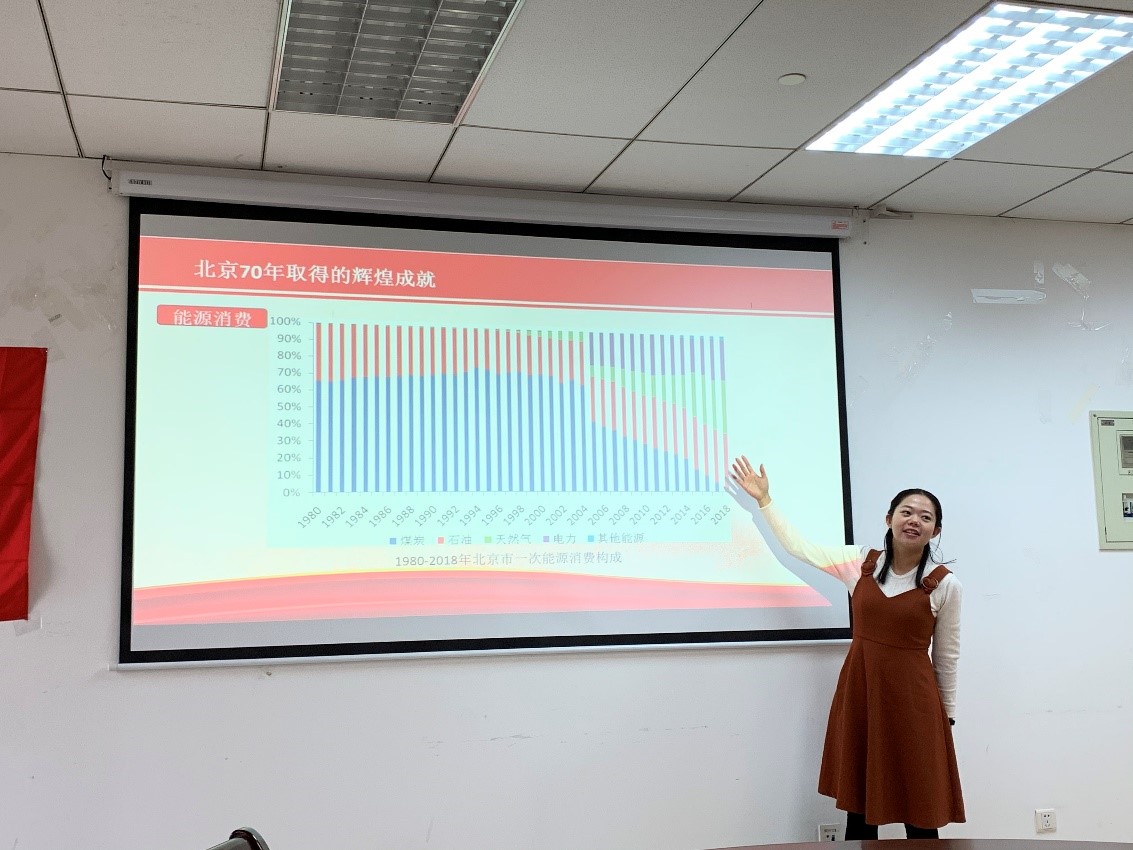 本次报告分为三个部分,分别是“北京70年取得的辉煌成就”、“70年发展的三个阶段”和“北京人的责任与担当”。第一部分于秋漫同志分别从经济总量、居民收入、能源消费、教育水平、社会保障等方面对七十年来北京取得的巨大成就进行了阐述,首都这70年来从贫穷落后走向富强复兴的光辉历程跃然纸上。