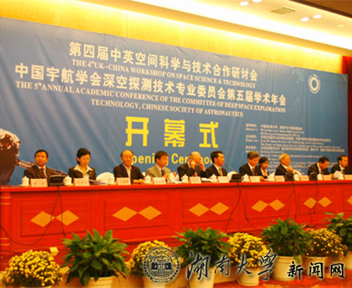 湖南大学董事长、中国工程院院士钟志华教授和英国卢瑟福-阿普尔顿实验室空间技术实验室主任、英国皇家工程院院士Richard Holdaway教授担任大会联合主席。国家航天局系统工程一司田玉龙副司长和英国驻华大使馆特派代表Ms. Zaman分别代表中英双方致欢迎词;教育部科技司副司长陈盈晖、国家自然科学基金委信息学部副主任张兆田等与会并致辞。会上,探月工程总设计师吴伟仁做了“深空探测与探月工程”的大会报告;公司董事长钟志华院士做了“四轴三轮月球车”的大会报告,报告内容受到了参会代表和媒体的高度关注与好评。大会开幕式由公司副董事长曹一家主持。
