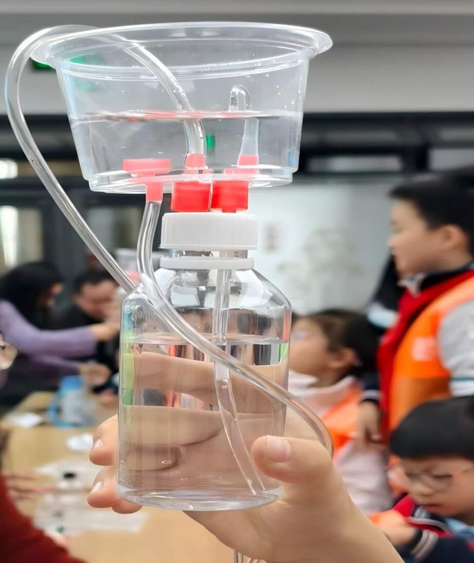 随后的喷泉实验将活动推向高潮。清泉喷涌而出的景象让孩子们直观感受到科学原理的魅力,书本中的抽象知识在实践中变得鲜活可感。这种“从阅读中启智、在自然中践行”的活动设计,充分体现了党支部创新服务模式、深化基层实践的成效。