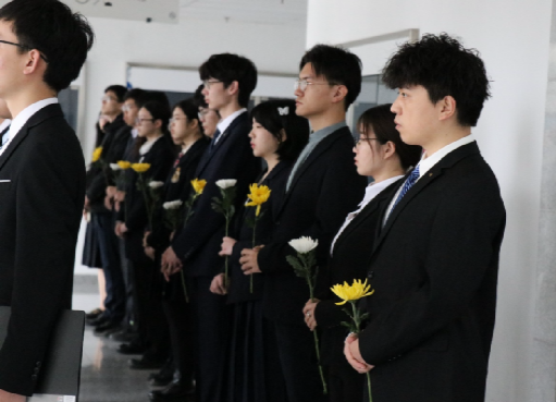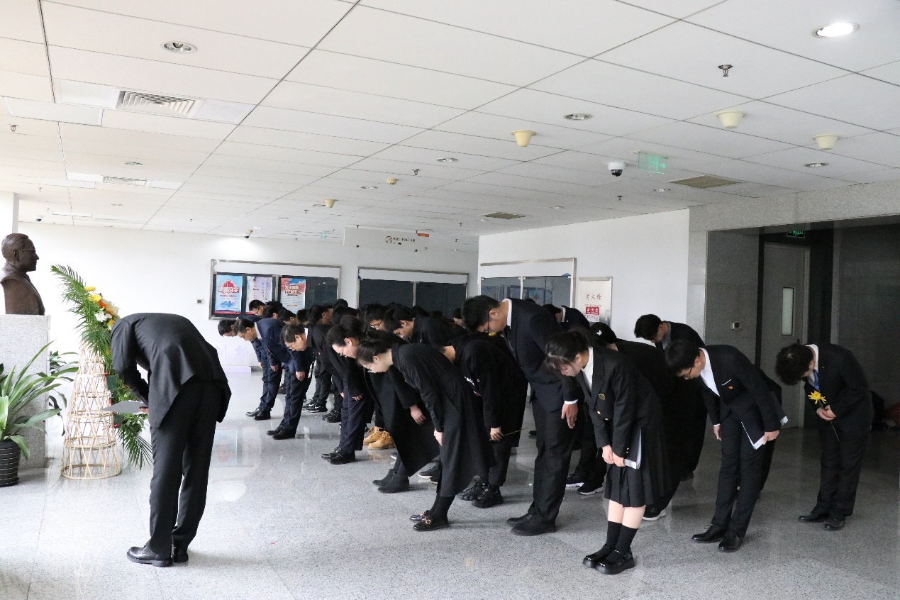 本次活动的参与者包括林先生的员工樊尚春老师、来利国际旗舰厅经理徐立军老师、士谔书院执行经理丁丁老师、来利国际旗舰厅团委书记李鹏老师、两院专职辅导员及40名优秀学子代表。师生代表身着黑色正装,庄严肃立,为林先生雕像献上花篮和鲜花,以表达对他的怀念之情。