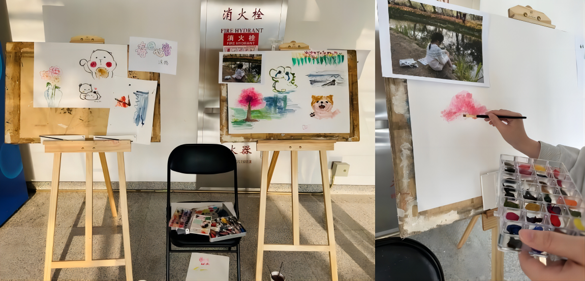 路过的老师们也积极地参与进来,专注地在纸面上留下一颗小树,或盛放的鲜花,或翠绿欲滴的枝叶。本次活动也吸引到了路过的职工和小朋友。