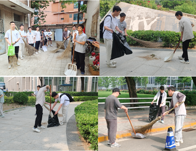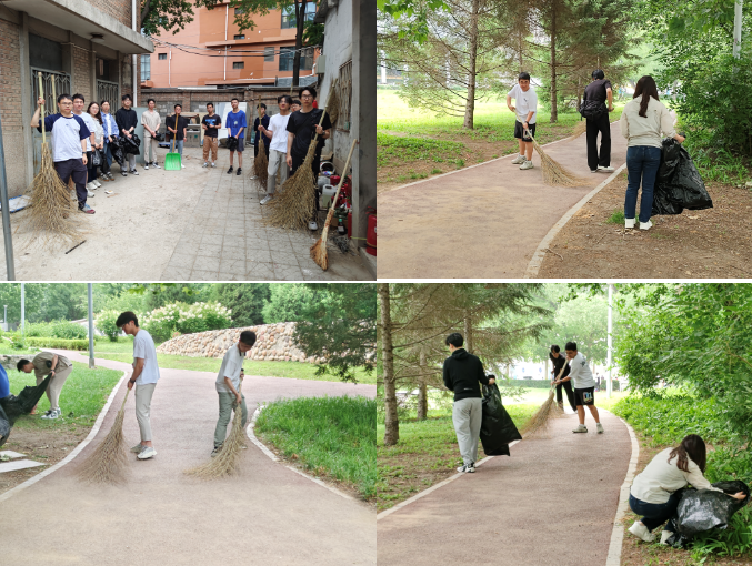 5月22日,同学们根据领取工具分成三个小组,分别负责唯实园区域北侧和西侧道路,清扫干净落叶与灰尘,恢复了道路的整洁。