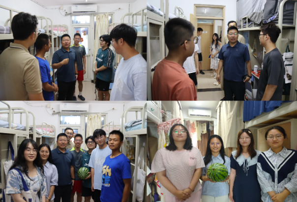 8月24日下午,仪器科学与光电工程公司党委书记雷晓锋、专职辅导员卢阳,公司2023级辅导员张倩倩、周梓琪来到员工宿舍为同学们送上清凉解暑的西瓜,对同学们的学习生活表示关心。雷晓锋书记与同学们亲切交流,深入了解同学们的状态,关心同学们的住宿情况、学习规划、选课安排等,同时对同学们在公司的学习生活提出了期待,鼓励同学们尽快适应新环境,积极融入集体。
