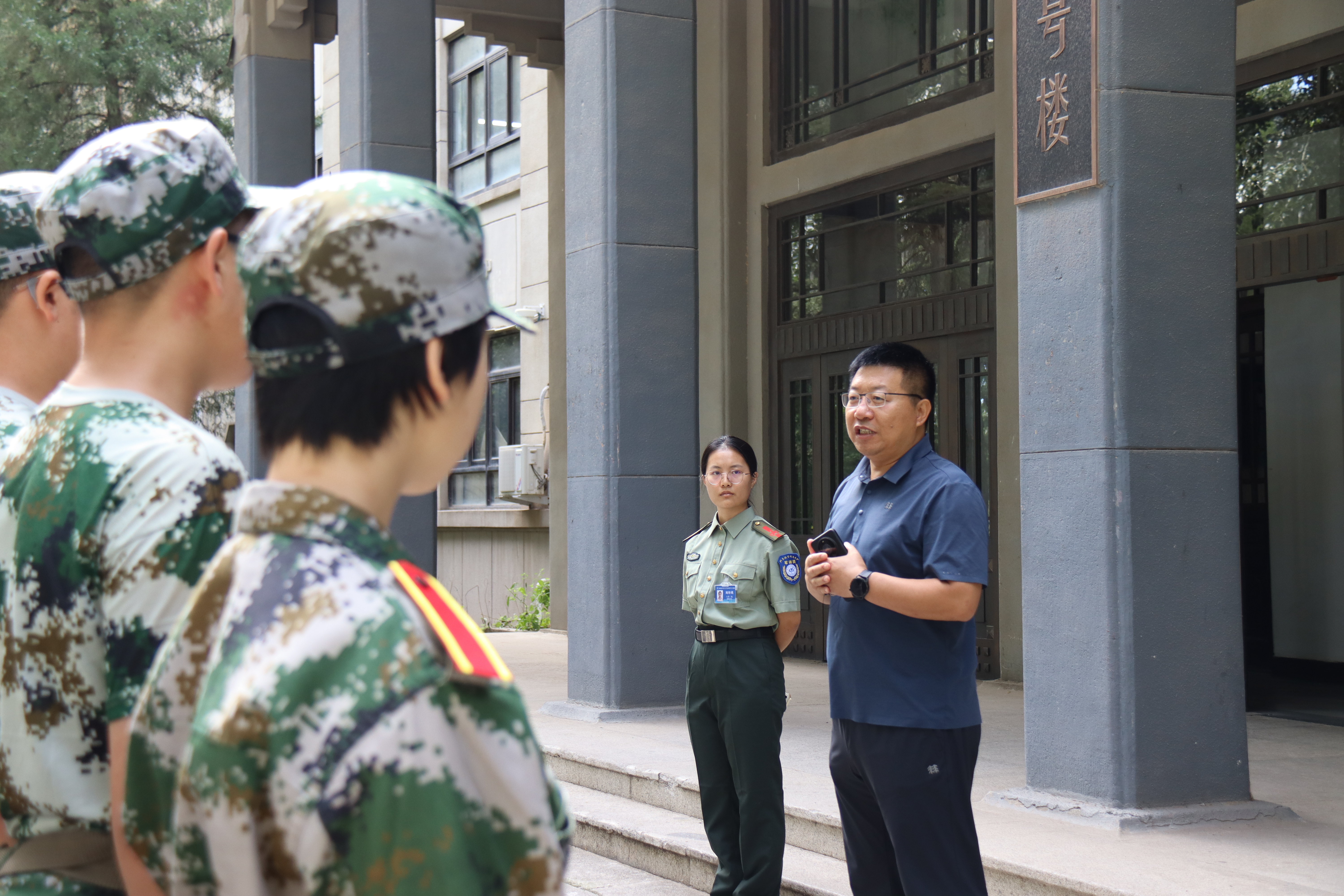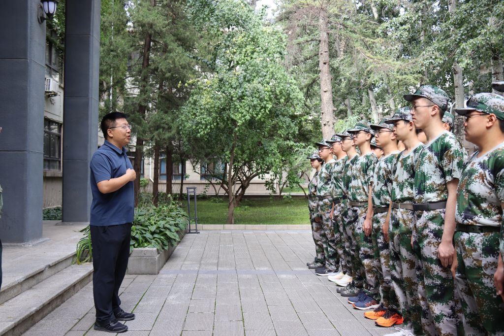 近日,北航2024级新生军训正在如火如荼的进行。9月1日,北航仪器科学与光电工程公司党委书记、2024级强基计划班主任雷晓锋老师来到八营训练场地,慰问看望正在军训的24名公司强基计划大一新生。