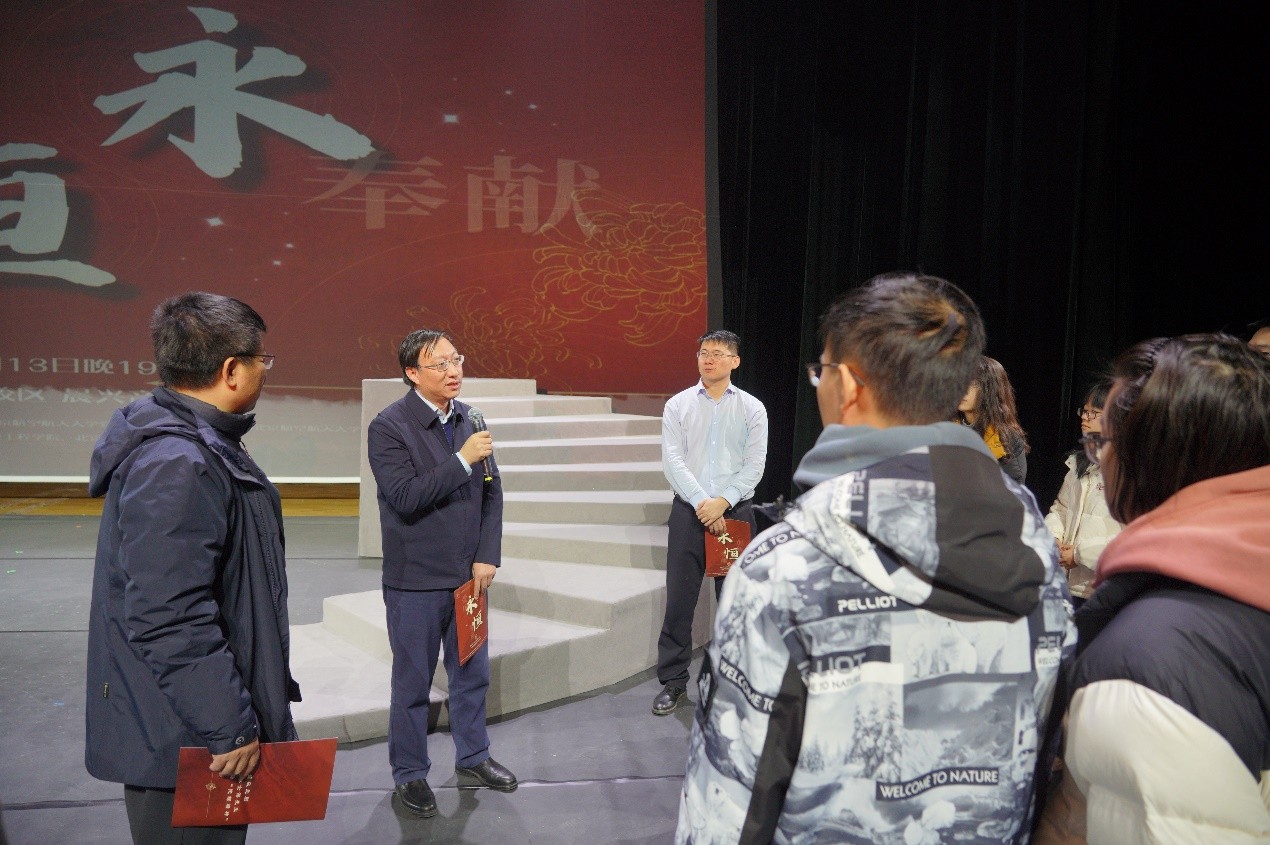 结合《永恒》话剧,吕董事长强调青年时期是人生旅途中最宝贵的时光,是奋斗的黄金时期,激励同学们要珍惜这段美好的时光,要怀揣梦想,设定目标,追求卓越,把握机遇,全身心地投入,让青春在拼搏中绽放光芒。