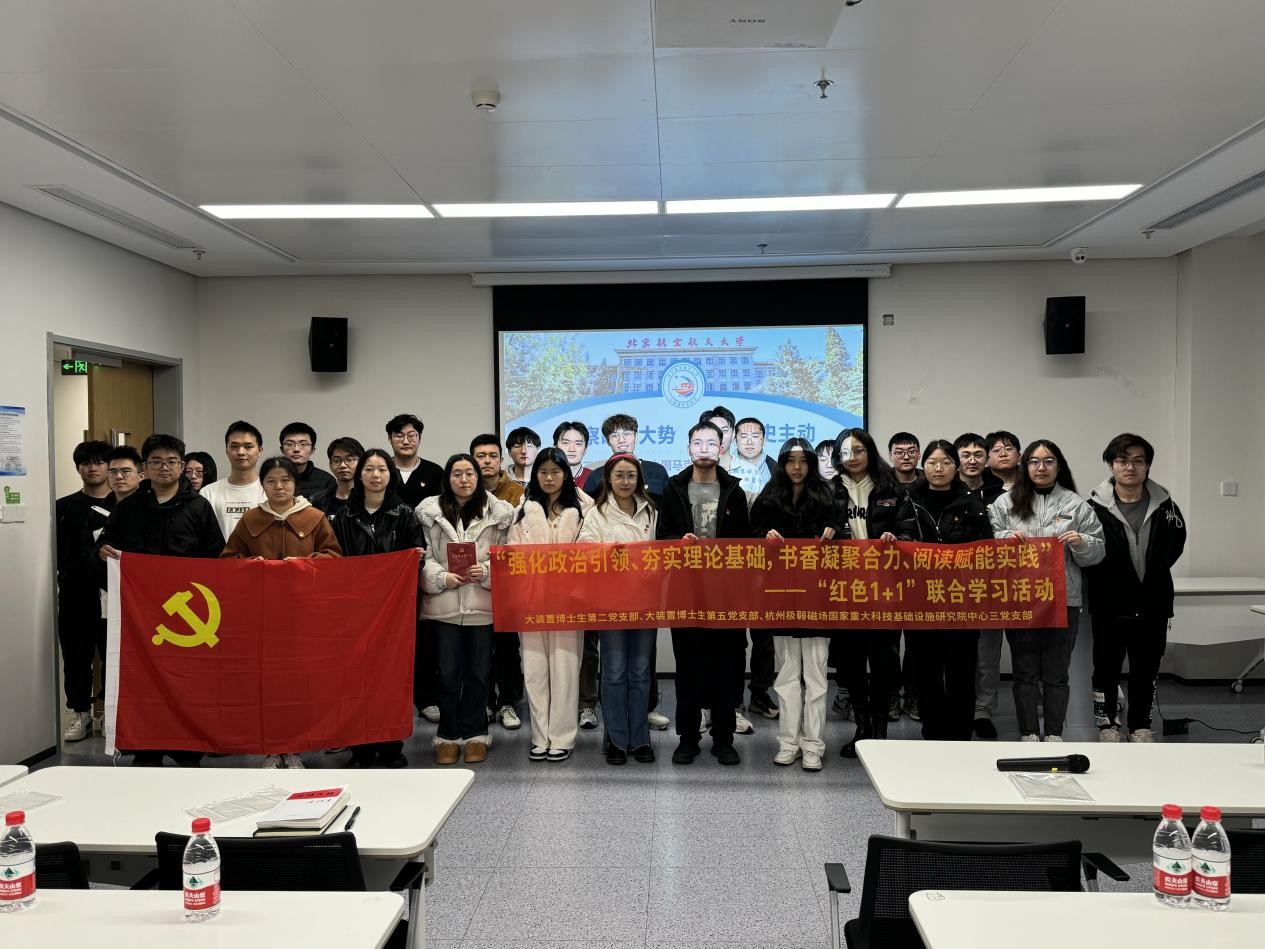 为加强学习型党支部建设,推动党建工作与科技创新的深度融合,2024年12月23日,大装置博士生第二党支部、大装置博士生第五党支部联合杭州极弱磁场国家重大科技基础设施研究院中心三党支部在北航杭研院白马湖院区5-403教室开展主题为“强化政治引领、夯实理论基础,书香凝聚合力、阅读赋能实践”的十二月学习总结交流活动。