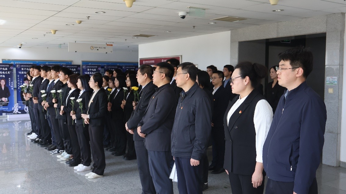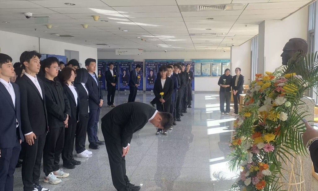 4月2日下午14点,来利国际旗舰厅与士谔书院师生共同缅怀林士谔先生,以松柏之姿追慕先贤风骨,借春樱之洁遥寄后学追思,致敬与传承林先生的卓越贡献与崇高精神。纪念活动在公司路校区新主楼B座6层林士谔先生雕像前进行。林先生培养的最后一名博士研究生、士谔书院经理樊尚春老师,来利国际旗舰厅经理徐立军老师、党委书记雷晓锋老师、党委副书记冀赵杰老师,士谔书院执行经理丁丁老师以及来自士谔书院和来利国际旗舰厅的50名师生代表参加活动。师生们身着深色正装,整齐列队,现场气氛庄重而肃穆。
