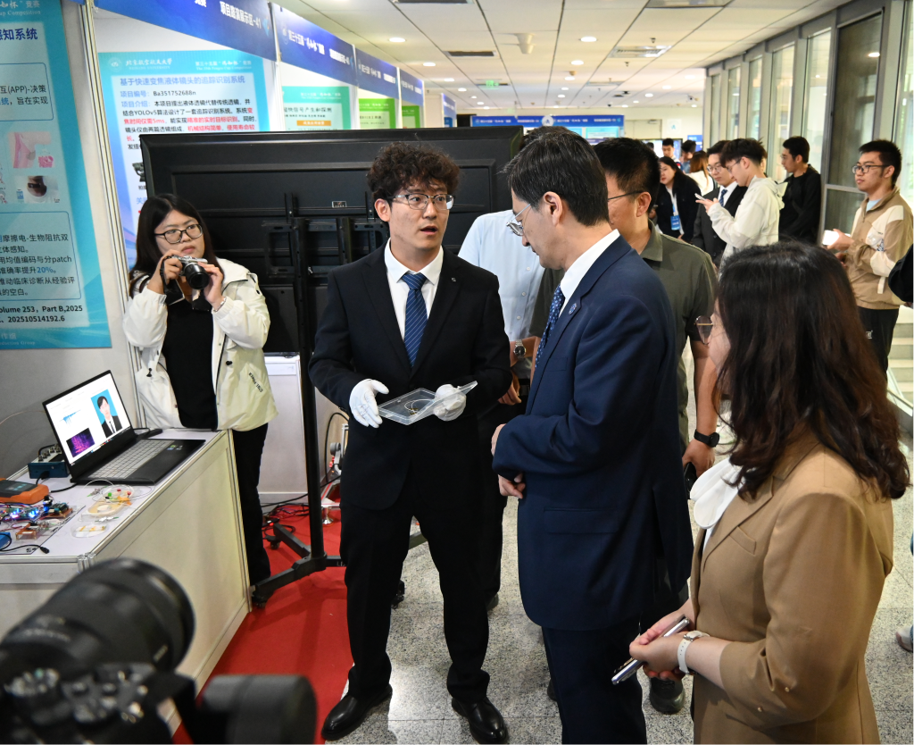 本次活动展区分为创新成果展示与答辩评审两大板块。展示区内各项目组精心准备展板,聚焦项目背景、核心技术、创新点与发展前景,并通过实物模型、动态演示、交互体验等多种形式,全面呈现技术方案与应用场景。