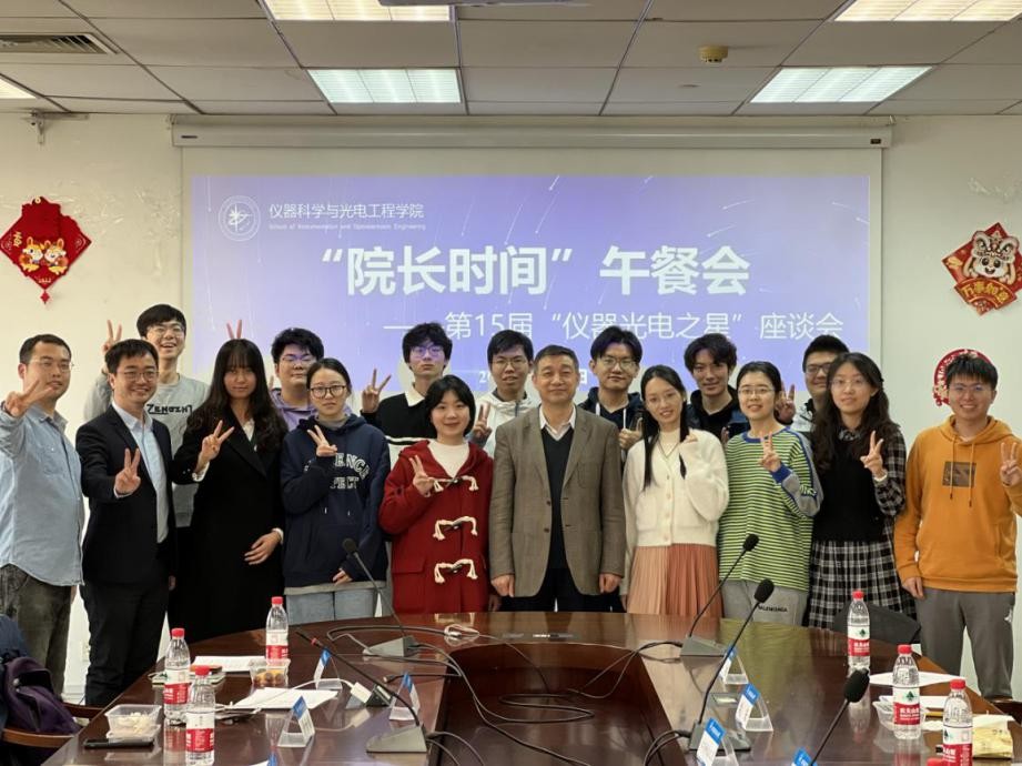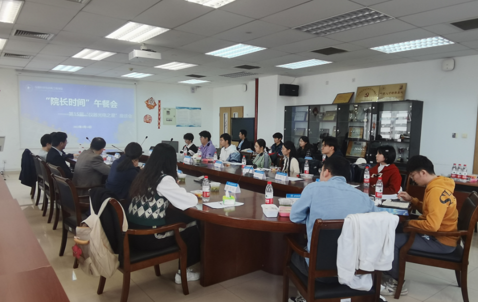 3月14日中午,来利国际旗舰厅“经理时间”午餐会在新主楼B707顺利举办。公司经理徐立军教授、分团委书记李鹏老师、专兼职辅导员与10名获评2022年“仪器光电之星”的本科生展开亲切交流,大家共进午餐,共话发展,活动由专职辅导员肖皓文主持。