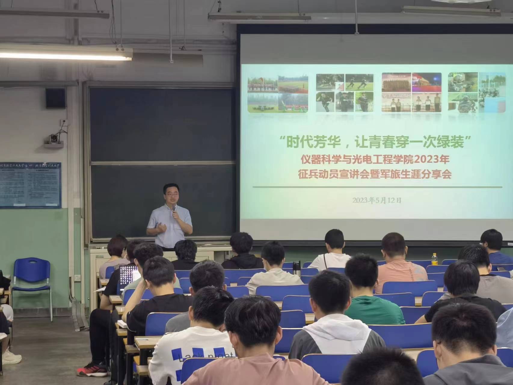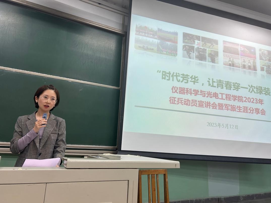 在两位同学的分享之后,高志浩老师结合如今社会形势,强调加强国防和军队建设是国家的迫切需要,同时鼓励在场的同学们参军入伍,尽自己保家卫国的一份义务,并针对入伍的优抚政策进行了重点说明。