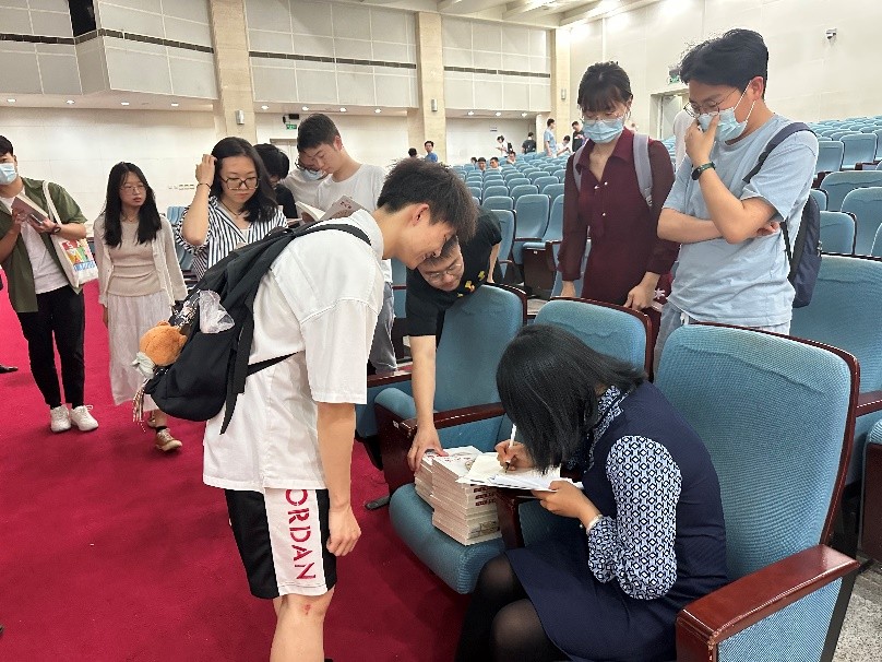 本次活动的最后,为激励有思想、有抱负的青年人,白老师在公司准备的奖品书籍上签名并写下美好祝愿,将传承和弘扬中华传统文化的接力棒传递到同学们的手中。