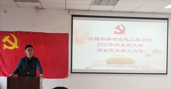 非常高兴能在1717党支部,能在其他优秀支部成员的见证下,成为一名中国共产党正式党员。成为一名的党员,对我意义重大。这不仅意味着,我正式成为这伟大光荣组织中的一员,同时也意味着更多的担当。在以后的日子里,我将继续发挥党员的先锋模范作用,勇做时代前列的奋进者,开拓者,奉献者,为共产主义事业奋斗终身。