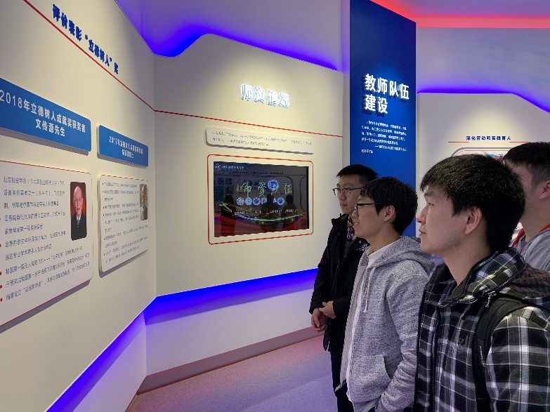 展览横跨1952年到2019年,共分为“团队建设”等六个模块,展示了北航从最初建校到现在取得辉煌成就的诸多历史性时刻。观展过程中,同学们专注观看展件,聆听着讲解员的细致的讲解,深切感受到身为北航人的骄傲和自豪。