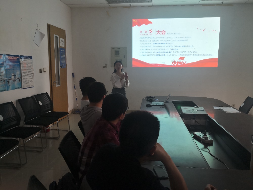 2019年5月15日下午五点,来利国际旗舰厅小卫星所博士第一党支部(公司路)在新主楼B608顺利开展了学习习近平新时代中国特色社会主义思想宣讲活动。本次活动邀请到北航研究生宣讲团成员王舒同志为大家做《漫谈中国企业发展史,致敬改革开放四十年》的宣讲。活动由党支部书记魏瑶同志主持,共有8名正式党员、1名预备党员、2名入党积极分子参加了此次活动。